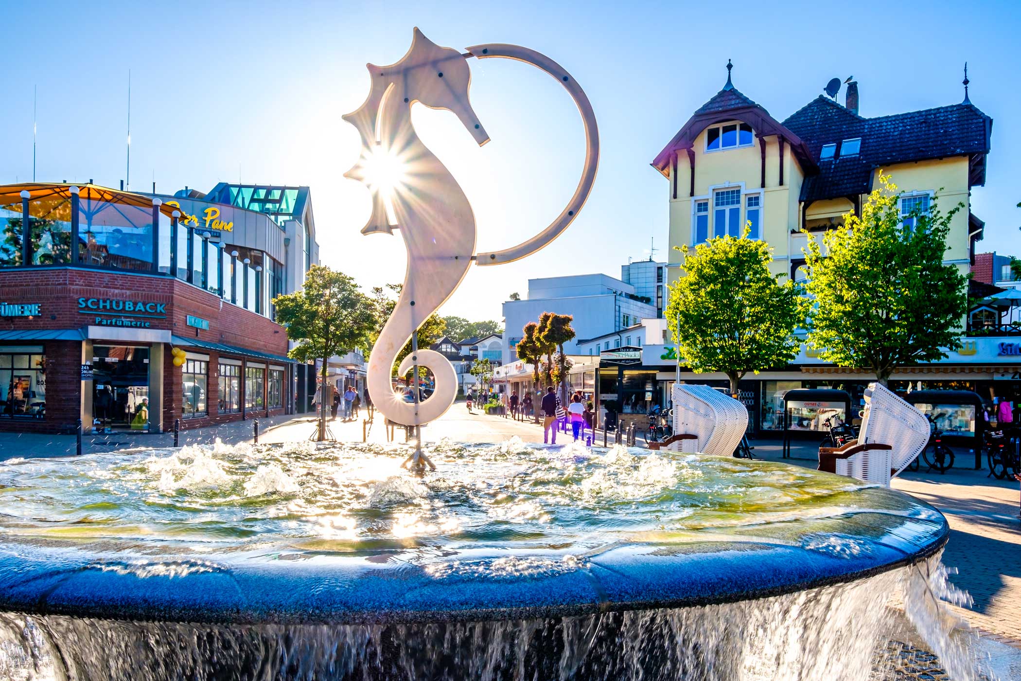 Центр гламура и непринужденной радости: Курортная жизнь здесь — это особое искусство. Она вращается вокруг длинных песчаных пляжей, где аренда престижной Strandkorb (плетеной пляжной корзины) — это целый ритуал. Культурная программа включает концерты на берегу моря, вернисажи в местных галереях и неспешные променады. Ухоженные парки и заповедные дубовые рощи, такие как Генрихсгоэ (Heinrichshöh), сами являются оазисами покоя и прохлады, а яхт-клуб и теннисные корты дополняют картину активной респектабельности.