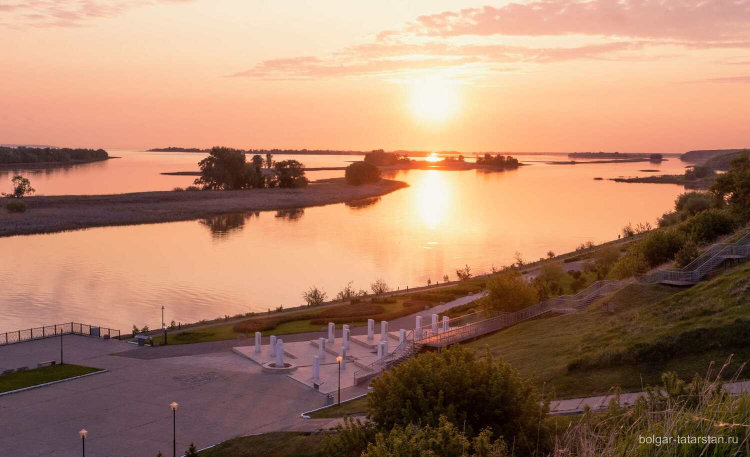 Болгар окружён широкими волжскими просторами, где вода и небо словно сливаются в одну бесконечную линию горизонта. Здесь воздух чист и прозрачен, наполнен ароматами трав и свежестью реки.